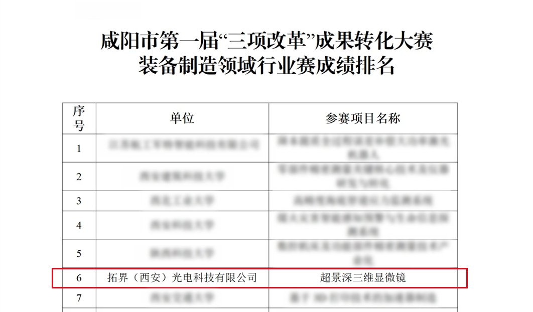 拓界(西安)光电科技有限公司,这家 2020 年成立的国家级高新技术企业,凭借自主研发的 “超景深三维显微镜” 项目,在本次赛事中斩获了高端装备制造成长组优秀奖。
